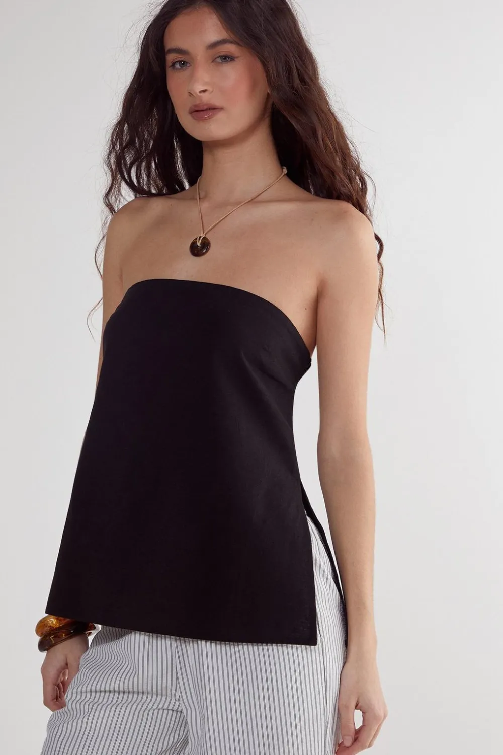 Top it off. Feel confident in our bandeau top, made in linen fabric, with a sleek, minimal design. Pairs well with anything from jeans to leather pants for looks that will take you from casual days to cocktail bars.