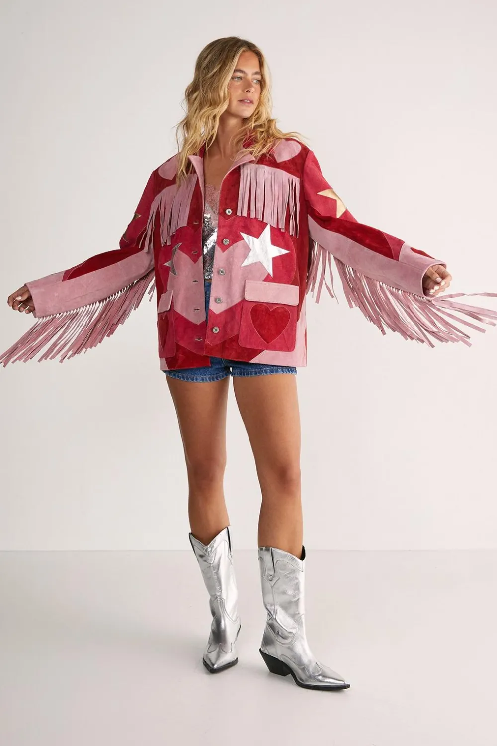 Fringing|Real & Faux Suede^Nasty Gal Real Suede Heart Fringe Jacket |