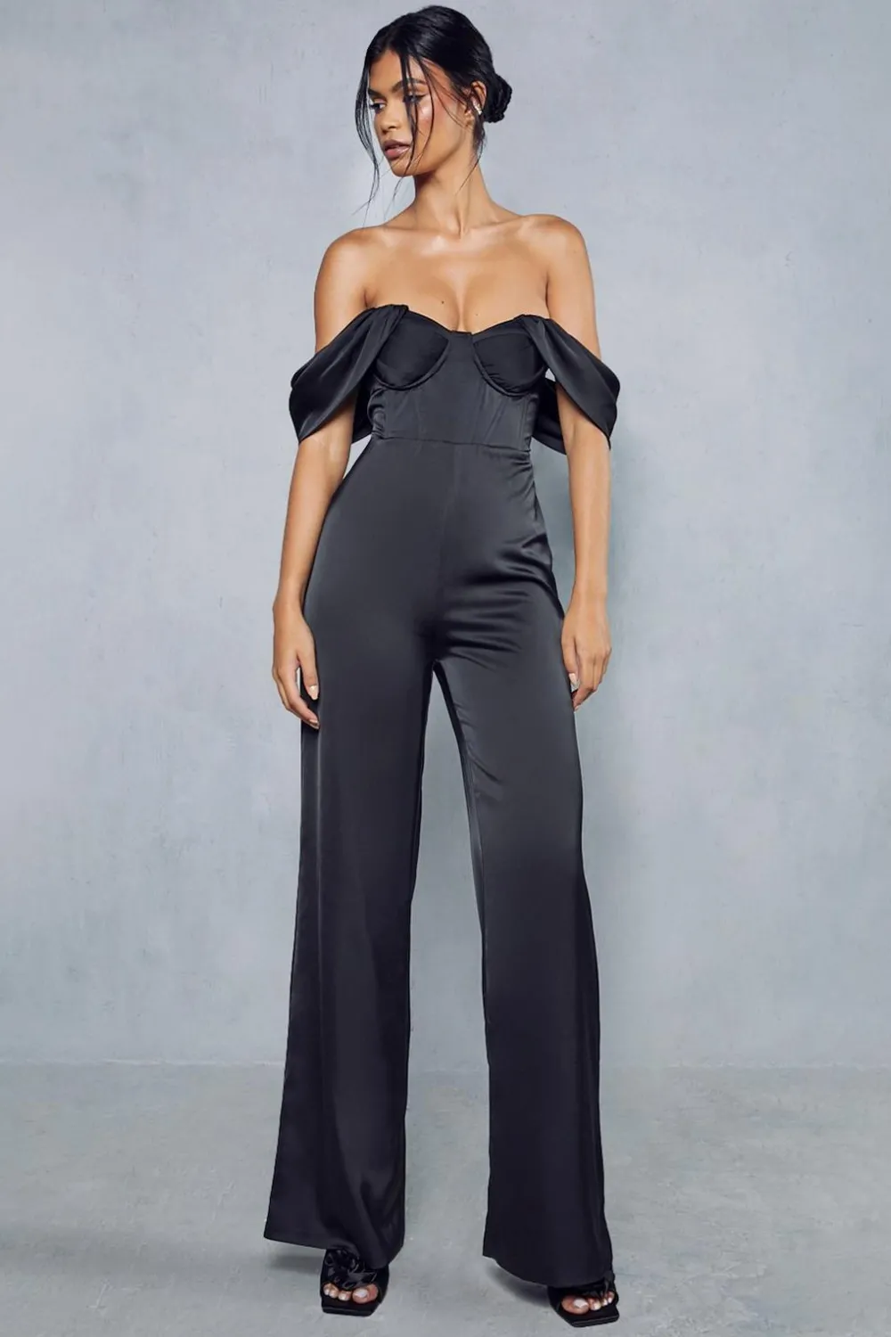 Jumpsuits|Jumpsuits^Nasty Gal Satin Corset Bardot Jumpsuit |