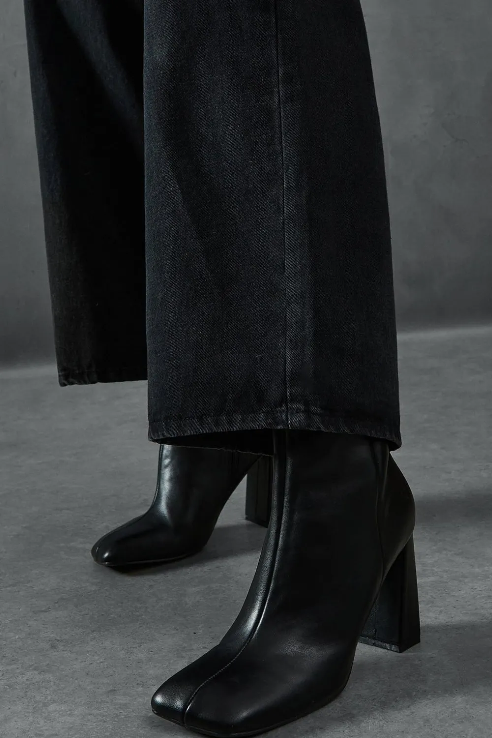 Leather^Nasty Gal Leather Look Square Toe Ankle Boots |