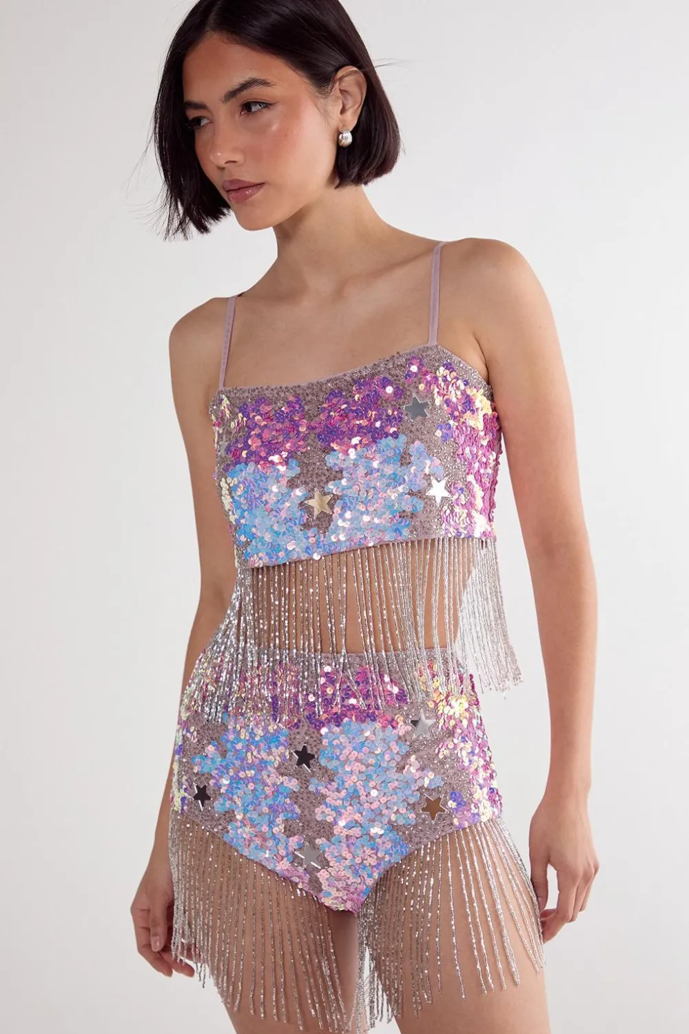 Sequin Outfits|Shorts^Nasty Gal Star Sequin Tassel Hot Pant |
