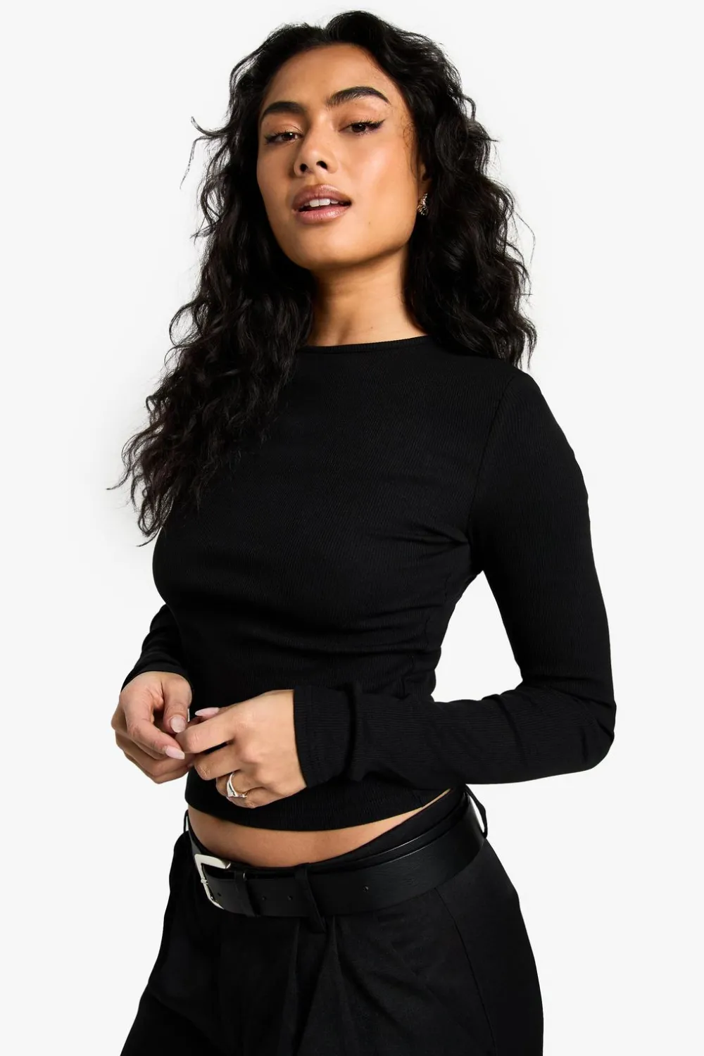 Tops^Nasty Gal Boohoo Basics Rib Long Sleeve Crew Neck Crop Top |